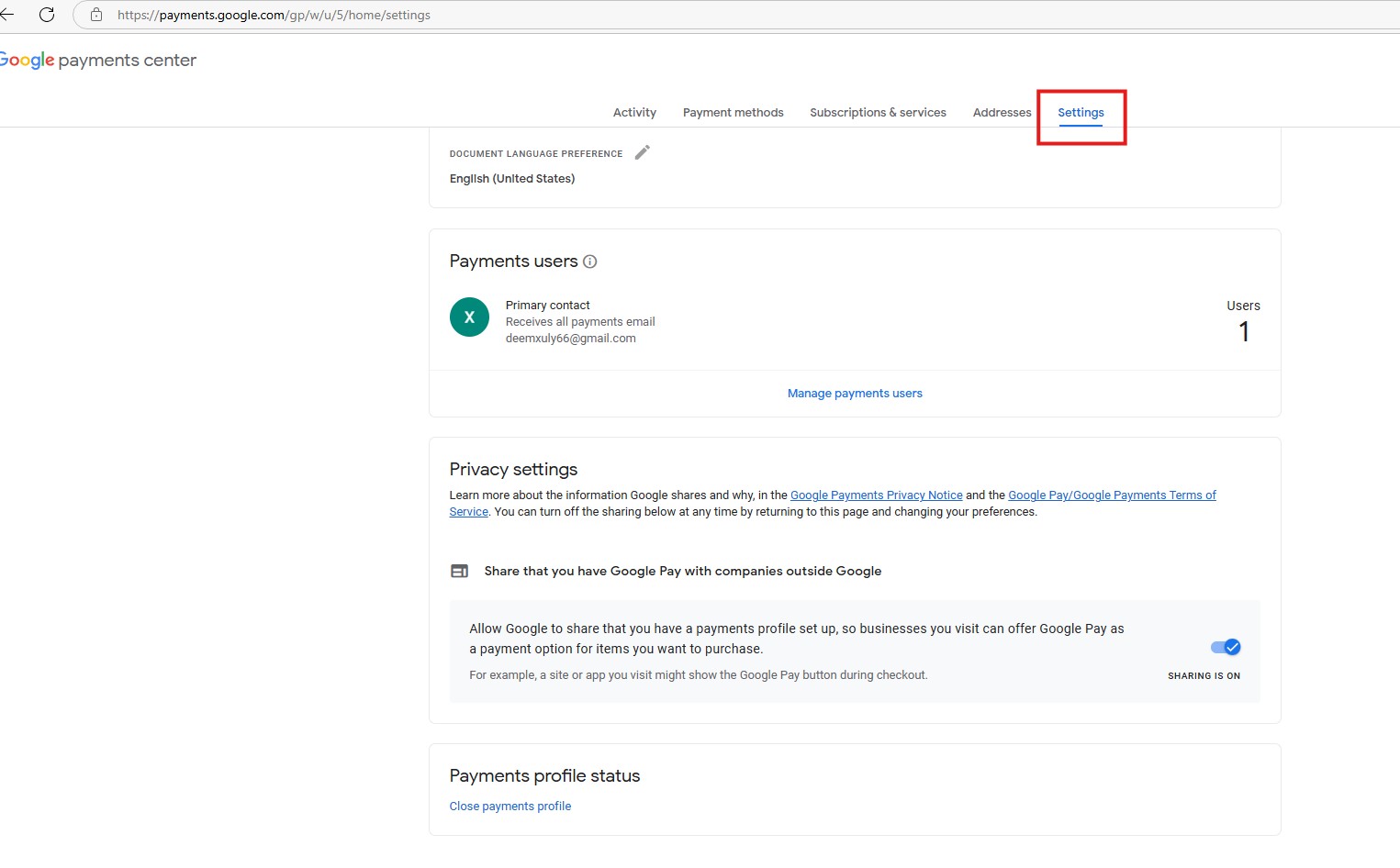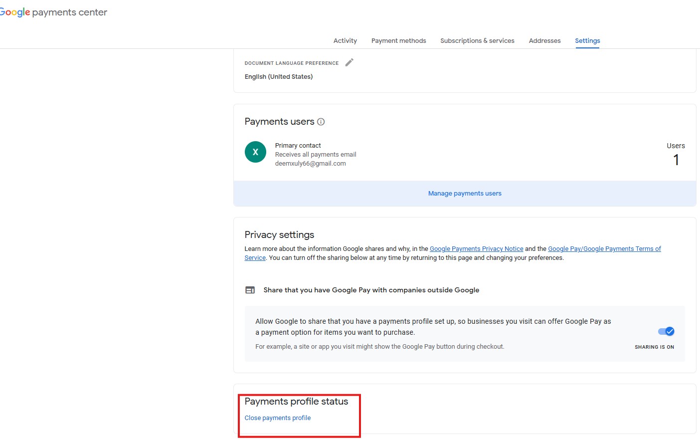 Bước 6: Đăng nhập vào đường link Google Pay có hình ảnh như bên dưới là đã đóng phương thức thanh toán thành công.