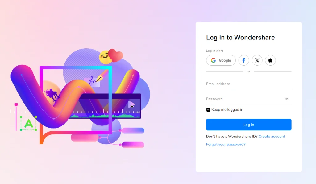Bước 1: Bạn hãy truy cập link này https://accounts.wondershare.com/web/redeem và nhập thông tin tài khoản Wondershare Filmora, sau đó chọn Đăng nhập (Log in)